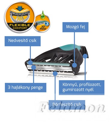 A 3 hajlékony penge a mozgó fejen lehetővé teszi a kényelmes, pontos borotválást minden szögből.